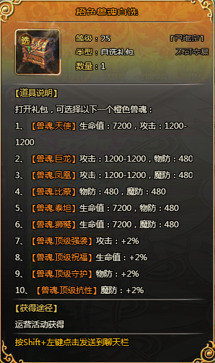 2、500:橙色幻兽碎片*50,神技碎片*30,30星X0礼包*30,龙魂精华(中)*2